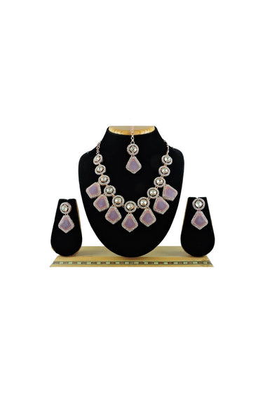 Alloy Material Purple Color Excellent Necklace With Earrings And Mang Tikka