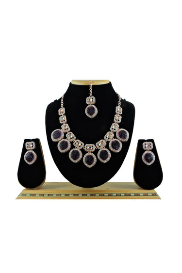 Alloy Material Purple Stone Necklace Set With Earrings