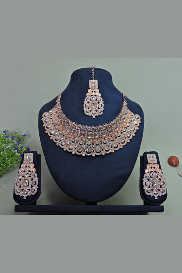 Amazing White Color Alloy Necklace With Earrings and Mang Tikka