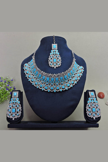 Blue Color Special Alloy Necklace With Earrings and Mang Tikka