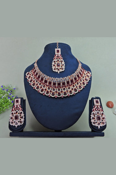 Creative Maroon Color Alloy Necklace With Earrings and Mang Tikka