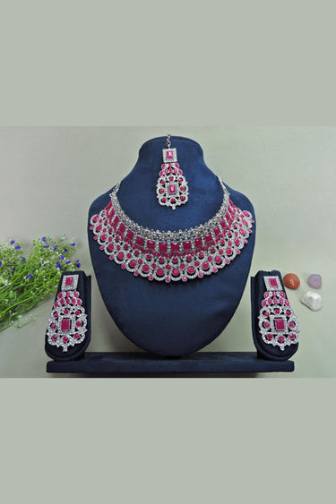 Graceful Rani Color Alloy Necklace With Earrings and Mang Tikka