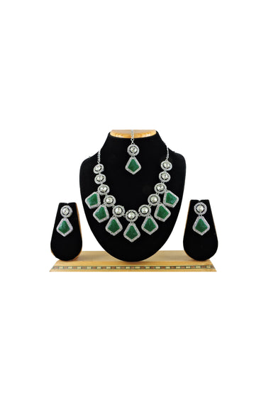 Green Color Alloy Material Special Necklace With Earrings And Mang Tikka
