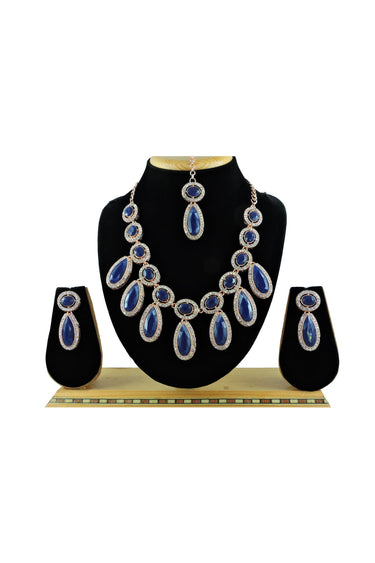 Navy Blue Cute Stone Studded Necklace Set With Earrings