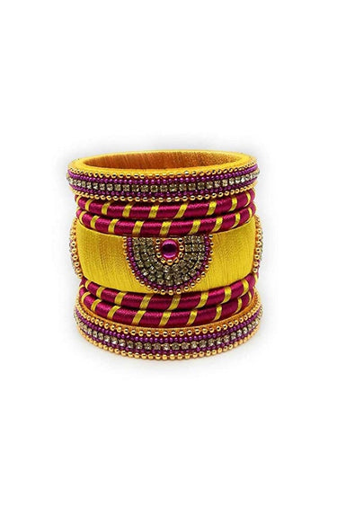 Silk Thread Customized Handmade Fancy Pink And Yellow Color Bangles Set