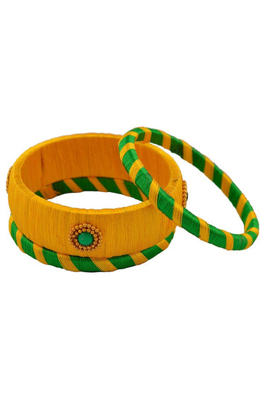 Silk Thread Handmade Customized Bangle Set In Green And Yellow