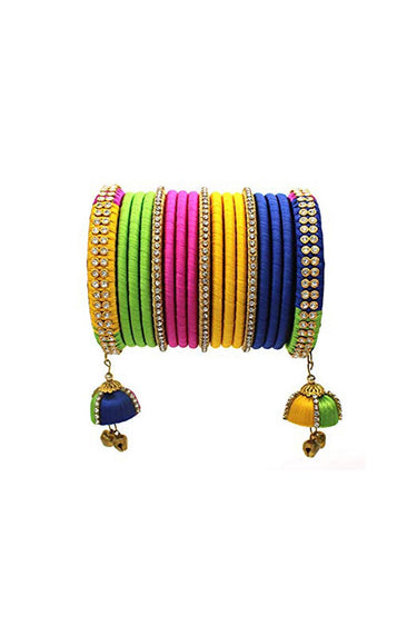 Silk Thread Multi Color Customized Handmade Fancy Bangles Set With Latkan