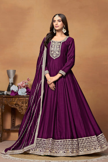 Purple Color Art Silk Fabric Function Wear Classic Anarkali Suit