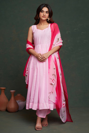 Viscose Organza Pink Color Readymade Anarkali Suit