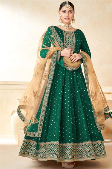 Fancy Fabric Superior Function Look Anarkali Suit In Green Color