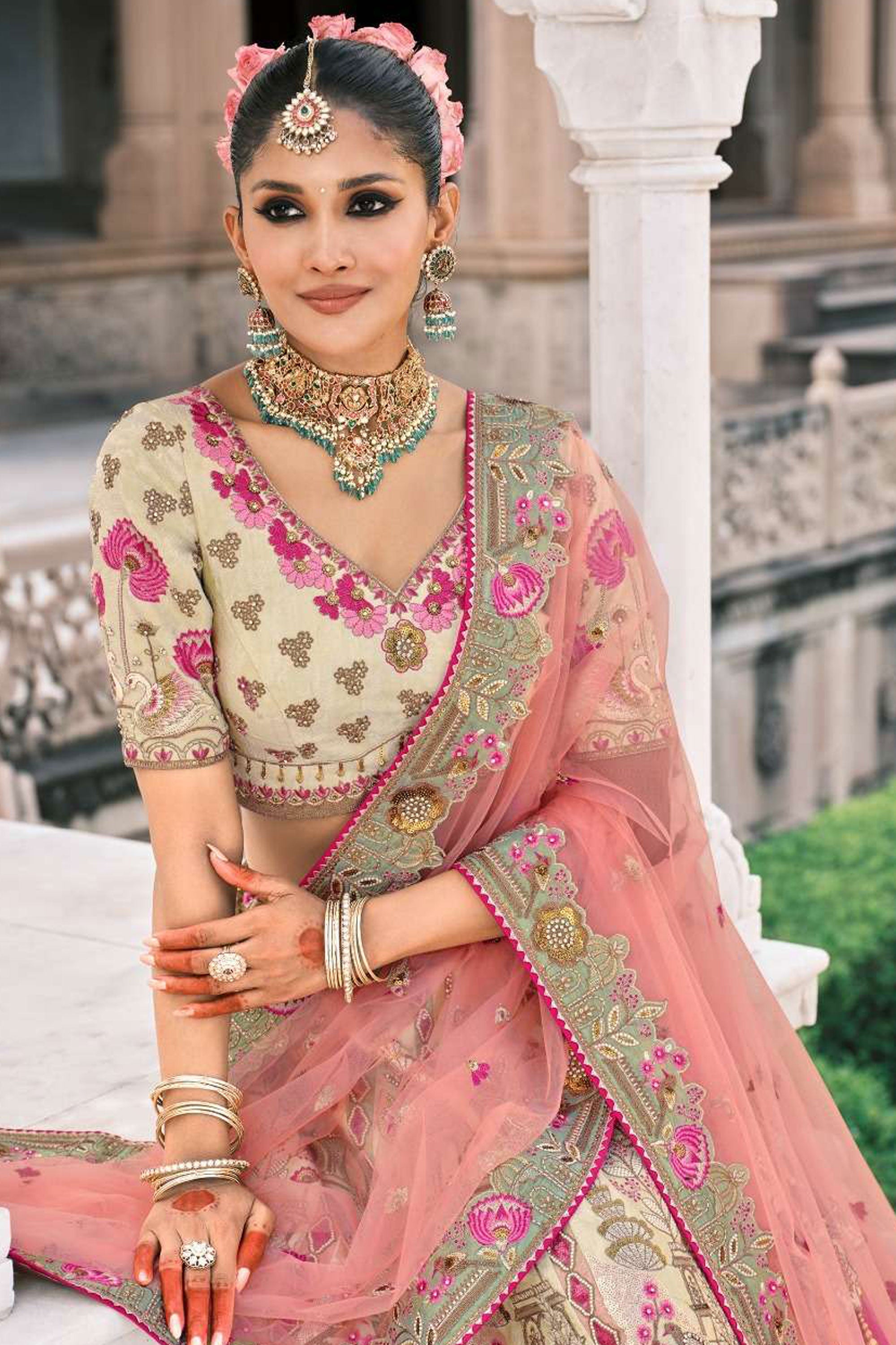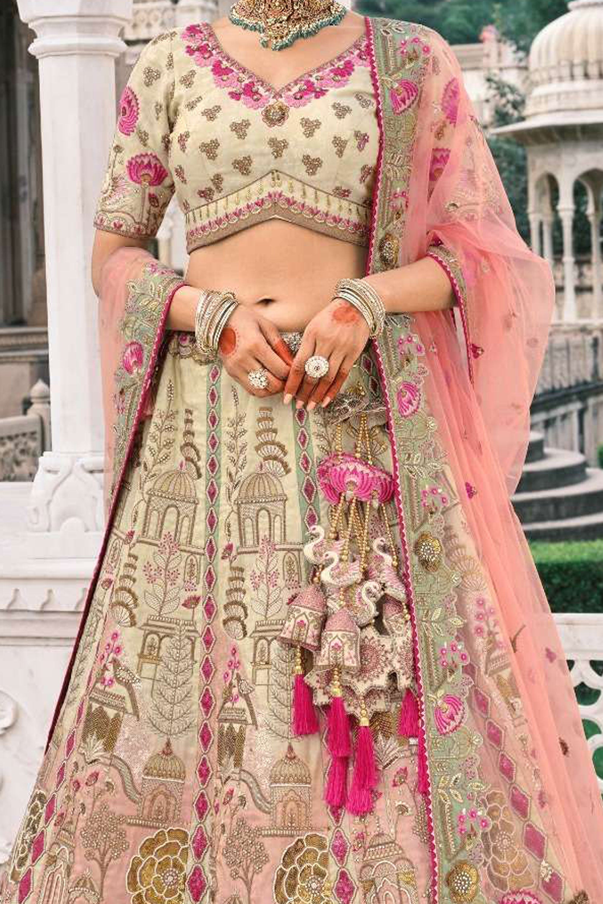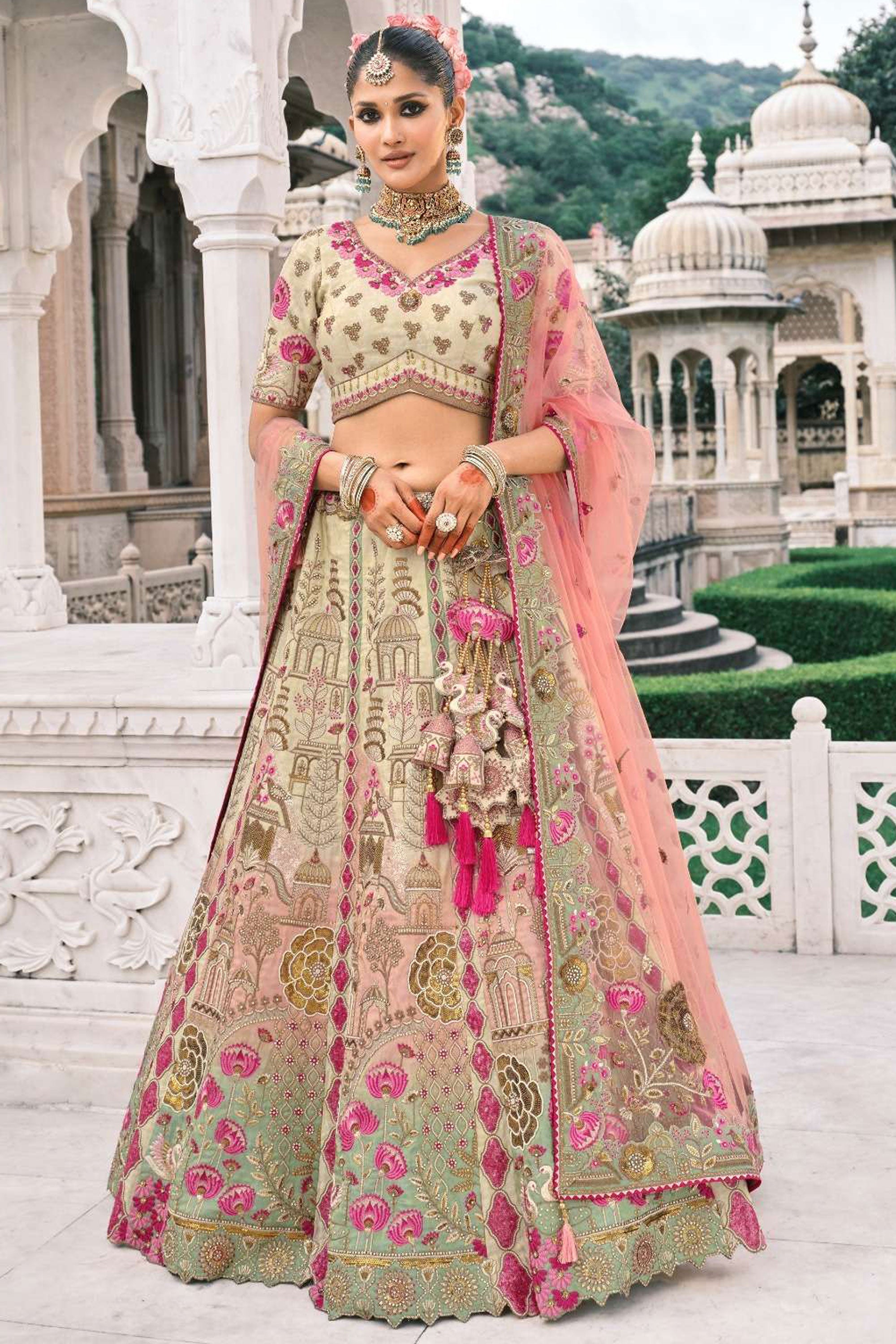 Art Silk Fabric Wedding Wear Vivacious Lehenga Choli In Beige Color