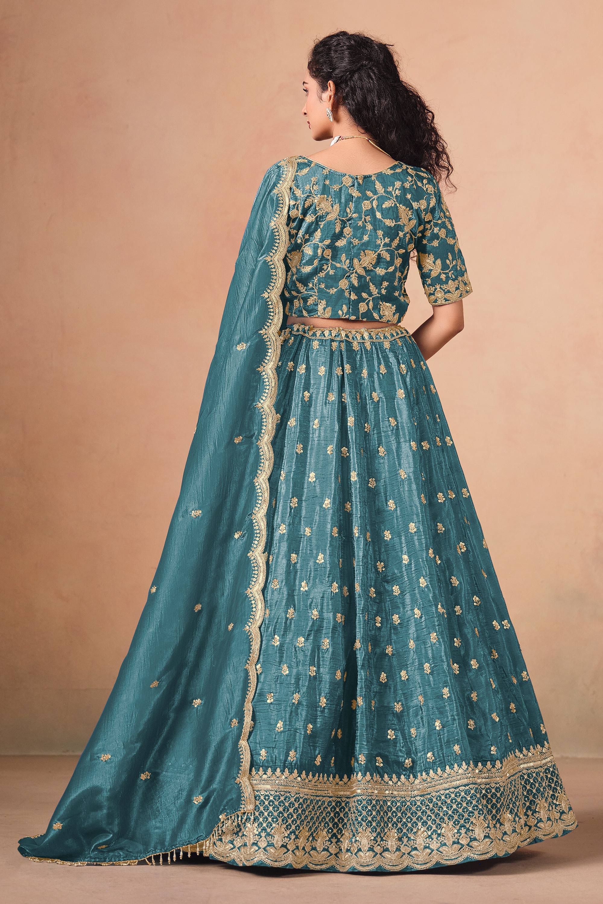 Embroidered Work Blue Crush Organza Fabric Festive Wear Lehenga Choli