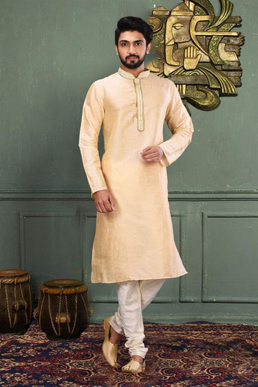 Art Silk Beige Magnificent Readymade Men Kurta Pyjama For Sangeet Wear