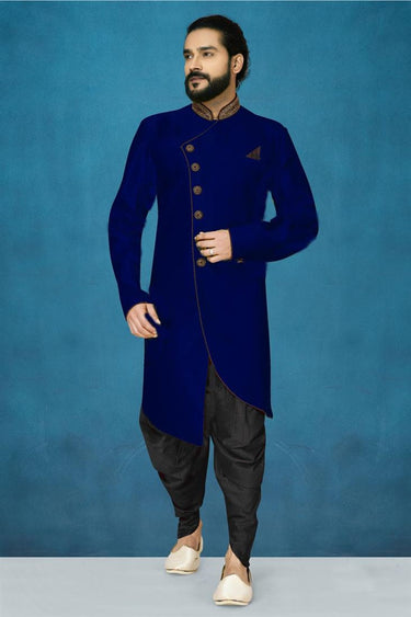 Art Silk Fabric Function Wear Patterned Dhoti Style Indo Western In Navy Blue Color