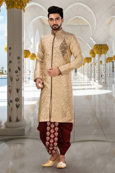Beige Art Silk Readymade Men Dhoti Style Kurta