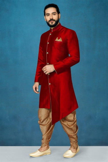 Dusky Maroon Color Art Silk Fabric Function Wear Dhoti Style Indo Western