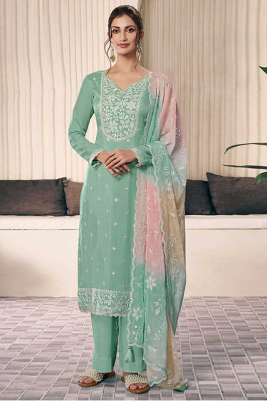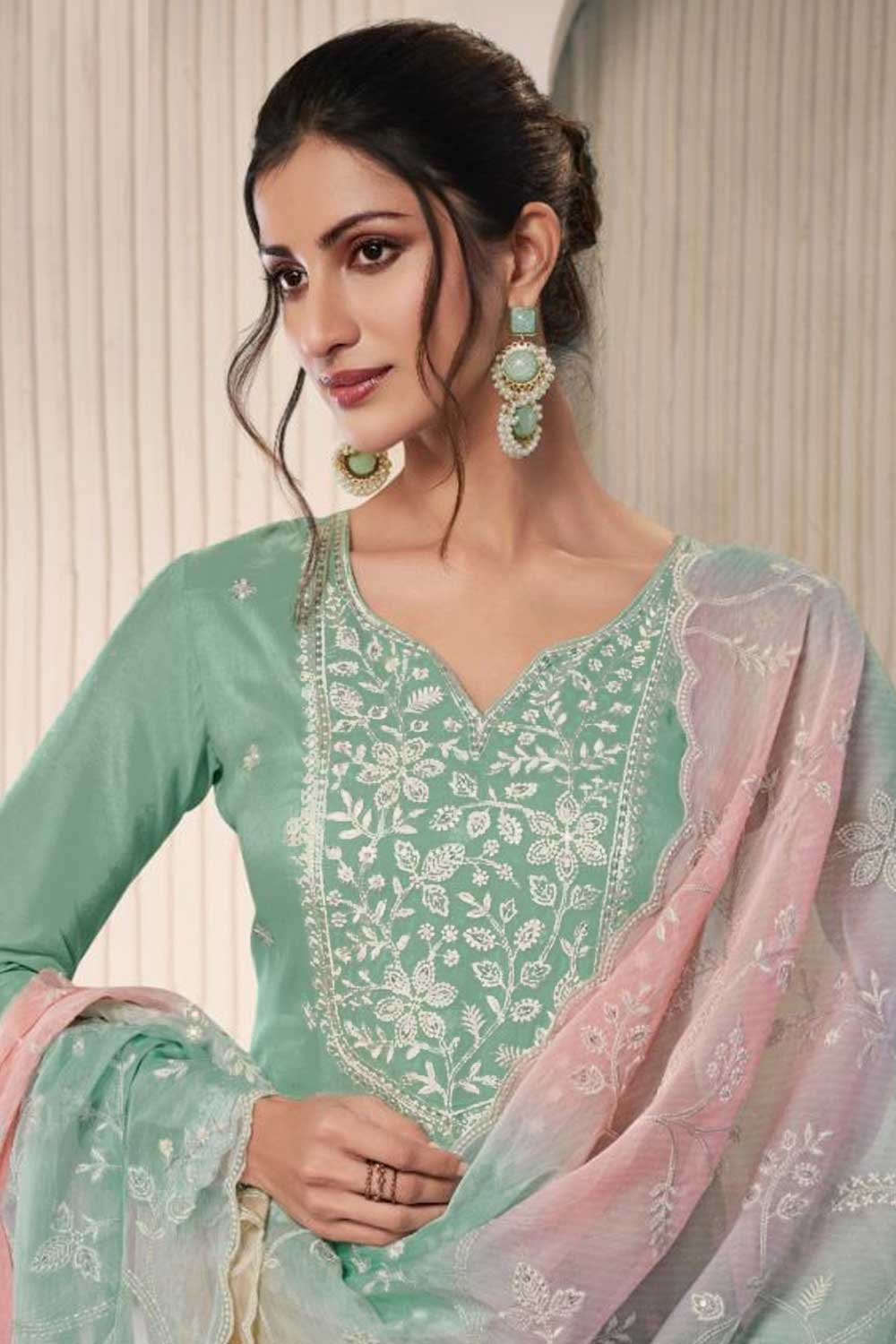 Diksha Singh Sea Green Color Art Silk Fabric Awesome Palazzo Suit