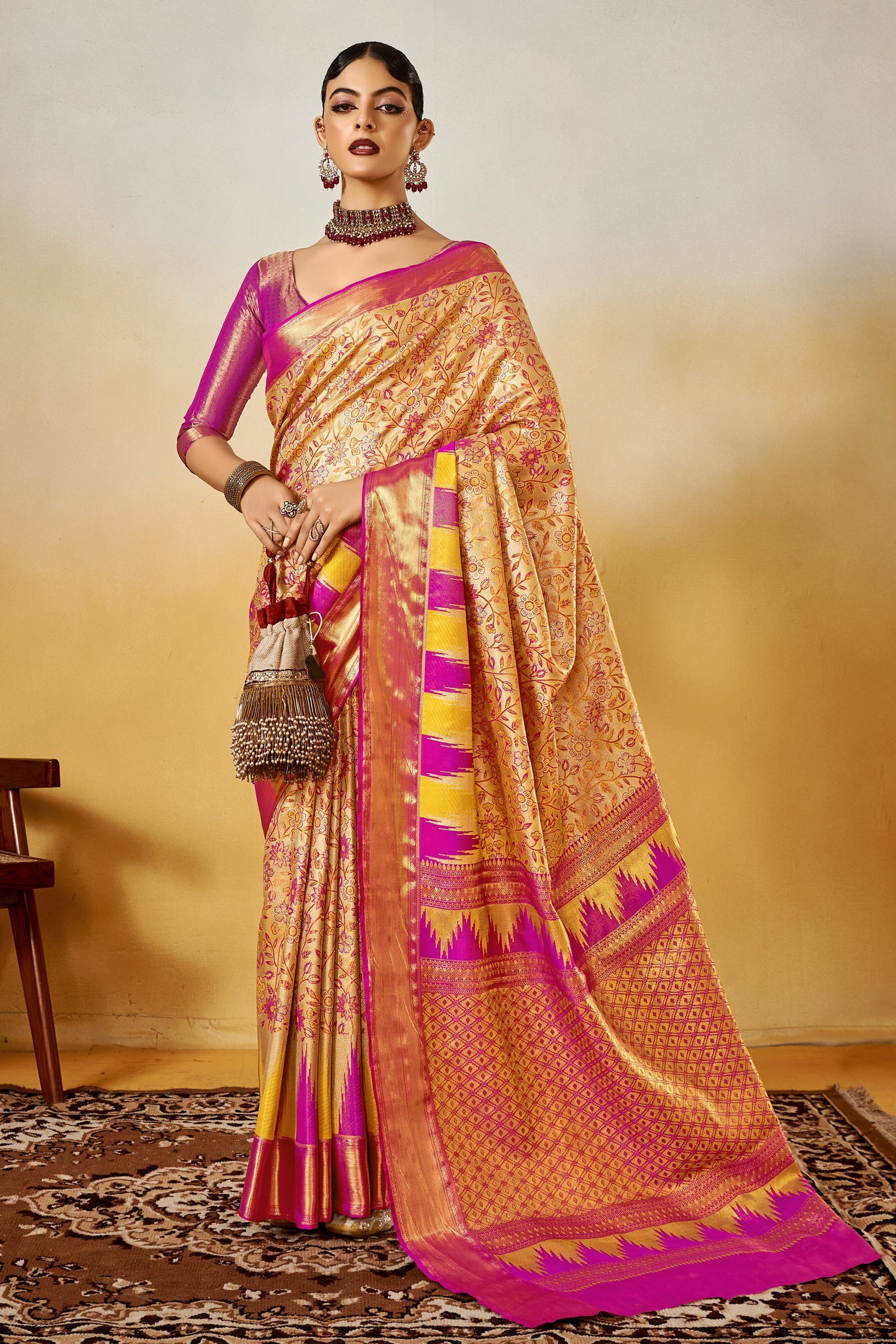 Art Silk Beige Zari Weaving Work Festive Wear Saree