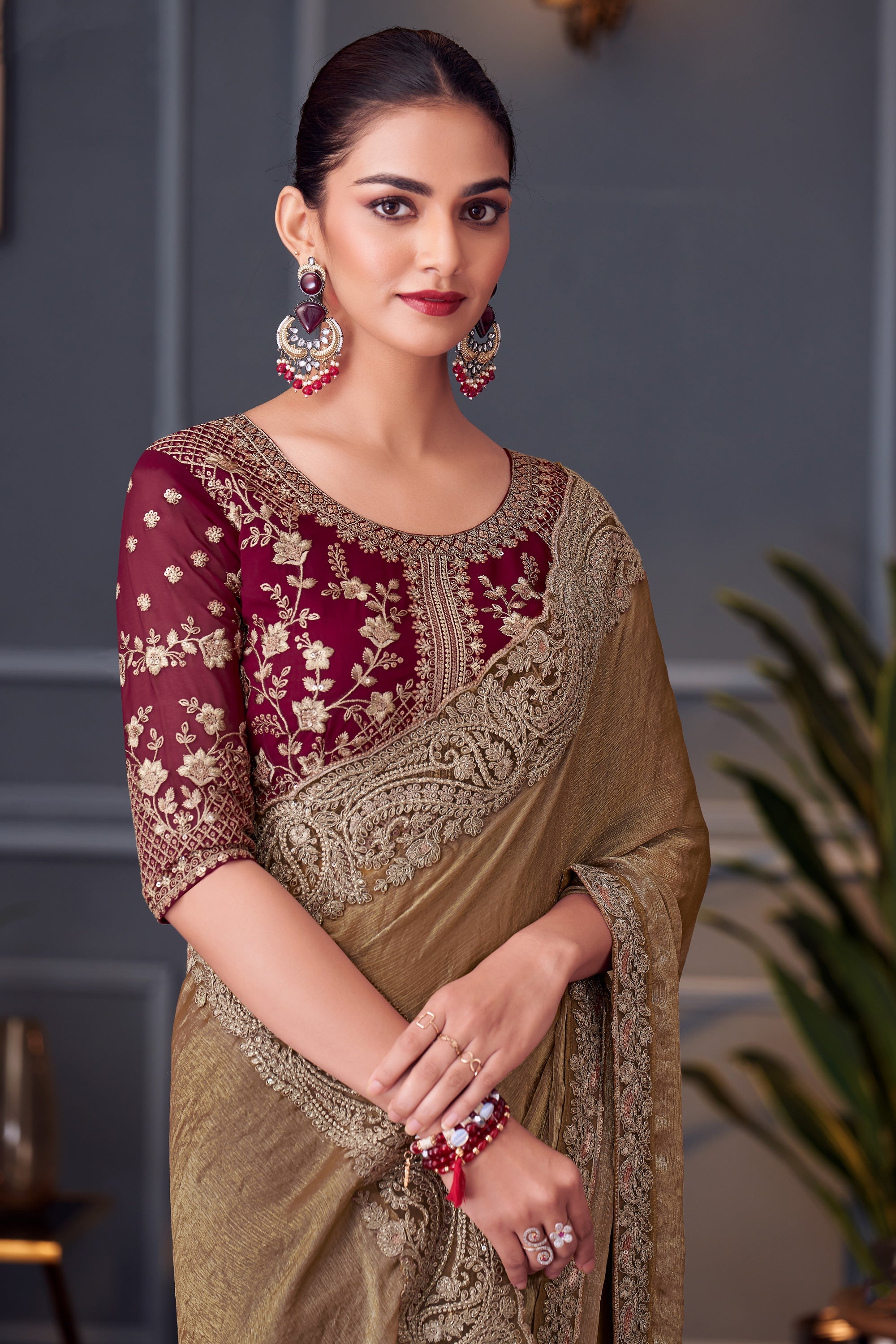 Embrace tradition with the Sangeet Wear Art Silk Embroidered Lace Border Work Saree in a captivating reach color. Part of our exclusive Bridal Collection, this saree is adorned with detailed embroidery and delicate lace border work. The tone silk fabric provides a rich texture and elegant fall. An unstitched blouse piece made of pure georgette is included for customization to your style. Ensure its beauty lasts by opting for dry clean only.