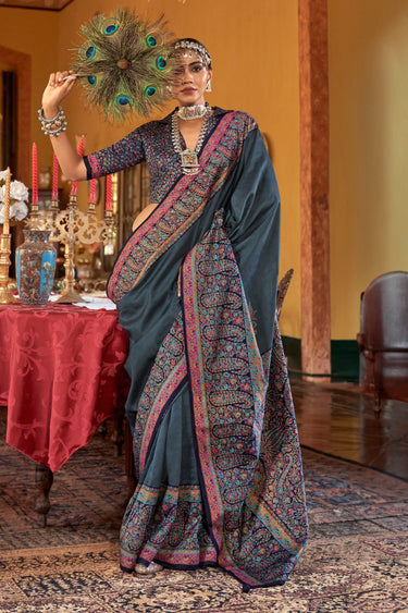 Art Silk Printed Grey Saree