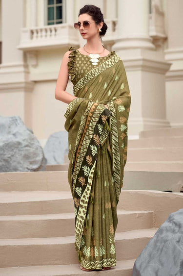 Incredible Printed Work On Art Silk Fabric Mehendi Green Color Saree