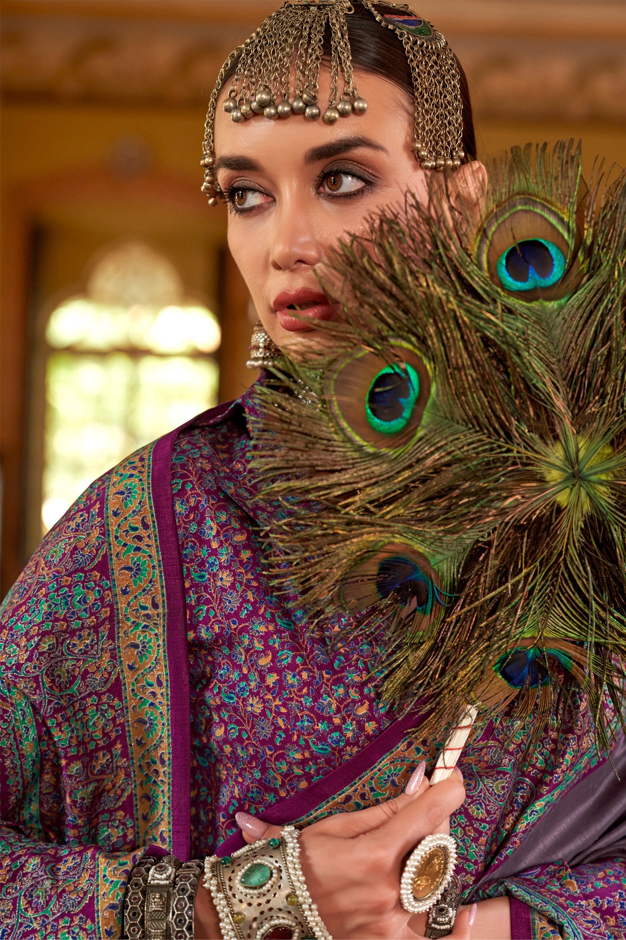 Lavender Art Silk Printed Saree For Sangeet Wear