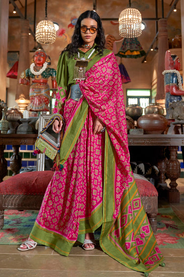 Enhance your bridal wardrobe with this luxurious Art Silk Designer Saree. Crafted with precision, its Patola-inspired prints bring traditional elegance into modern fashion. The vibrant colors and fine texture make it an ideal choice for weddings, parties, and festive celebrations. The unstitched blouse included allows for a personalized and tailored design to complete your ensemble. This saree seamlessly combines cultural richness with contemporary sophistication for an unforgettable look.