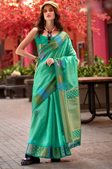 Sea Green Color Fantastic Banarasi Silk Fabric Saree With Weaving Work