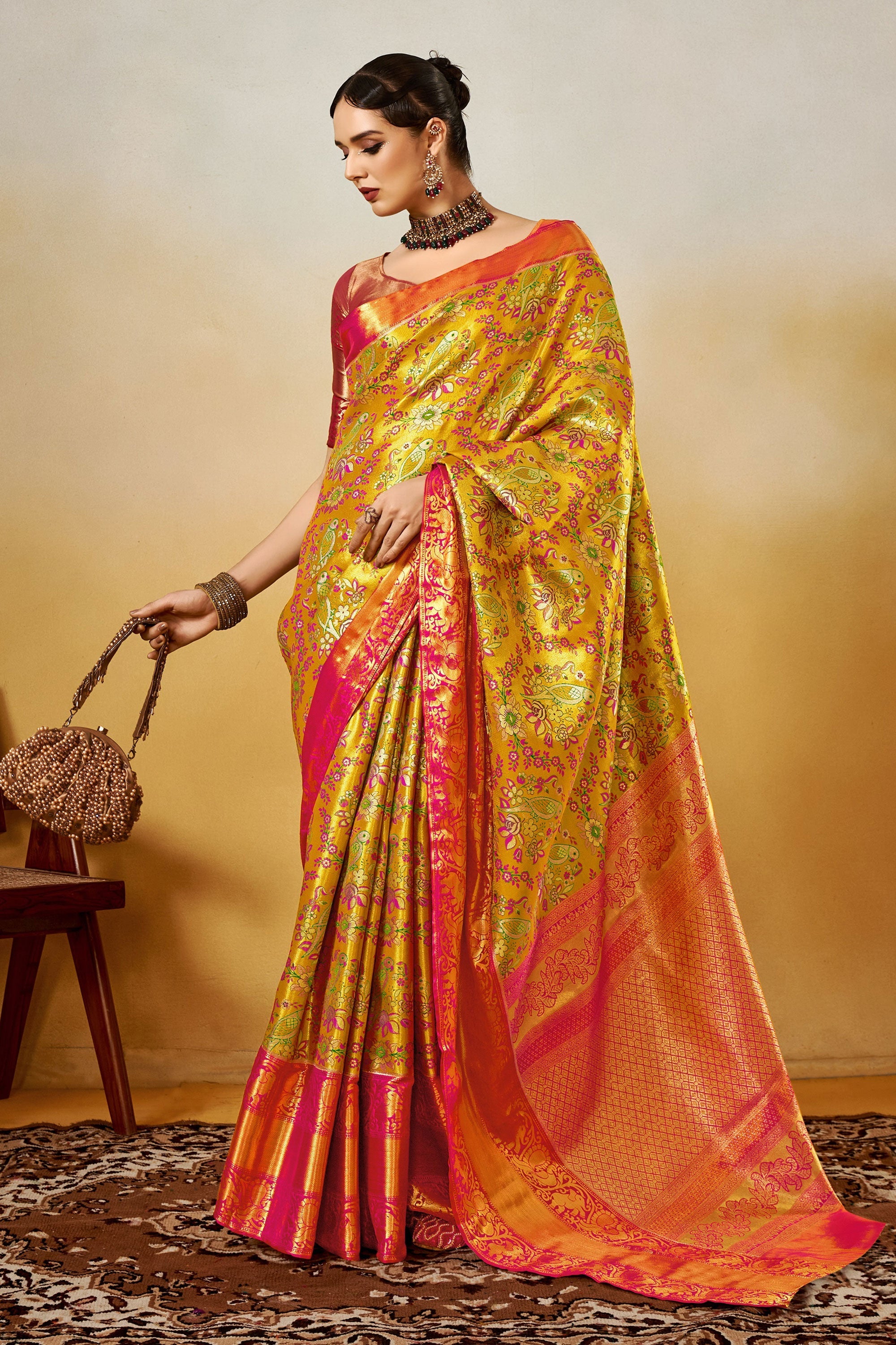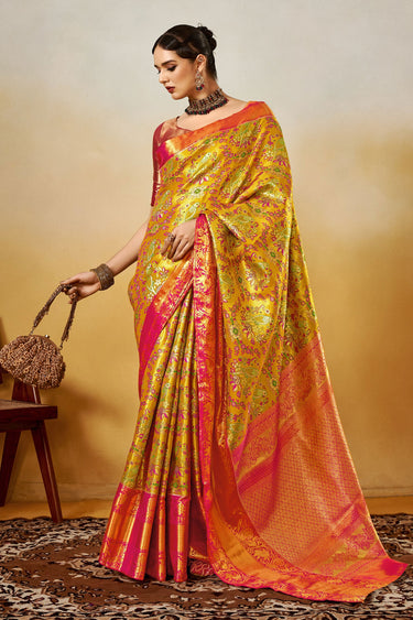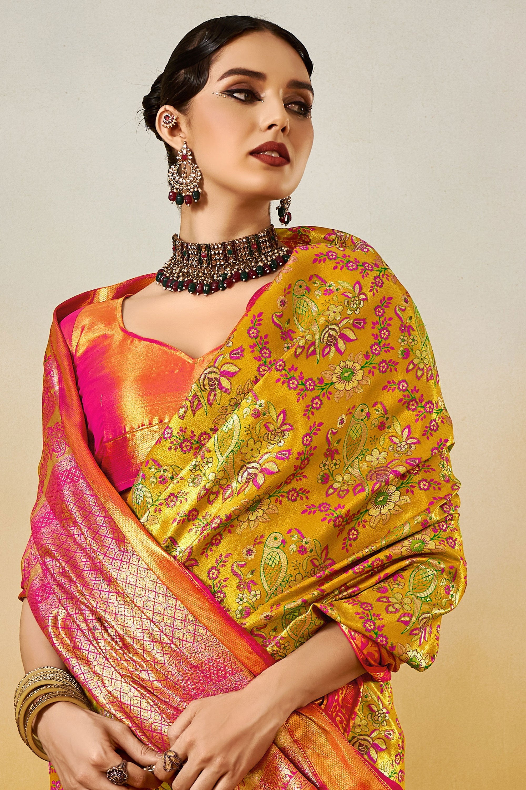 Yellow Art Silk Zari Weaving Work Festive Wear Saree