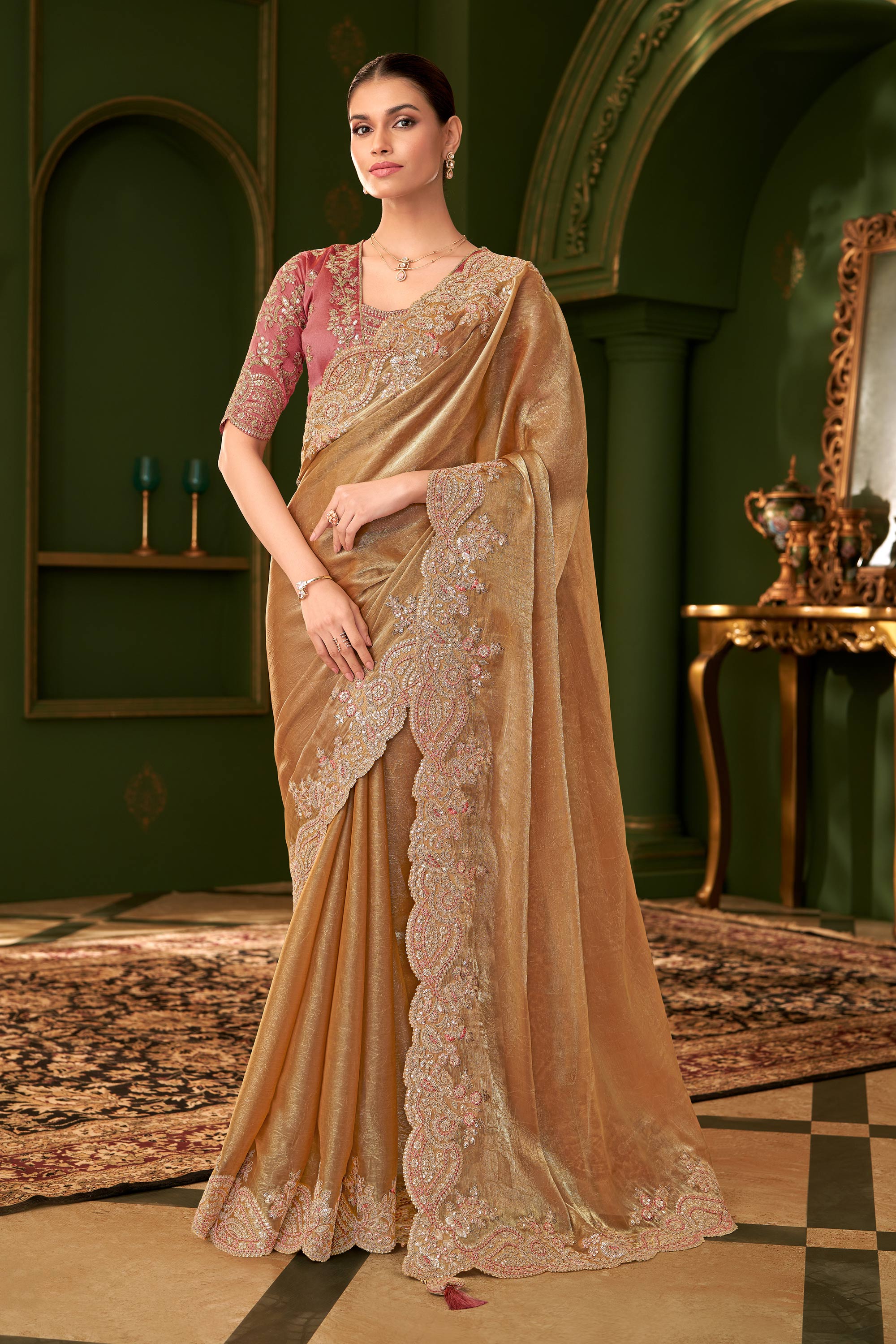 Chiffon Silk Fabric Brown Saree For Function Wear