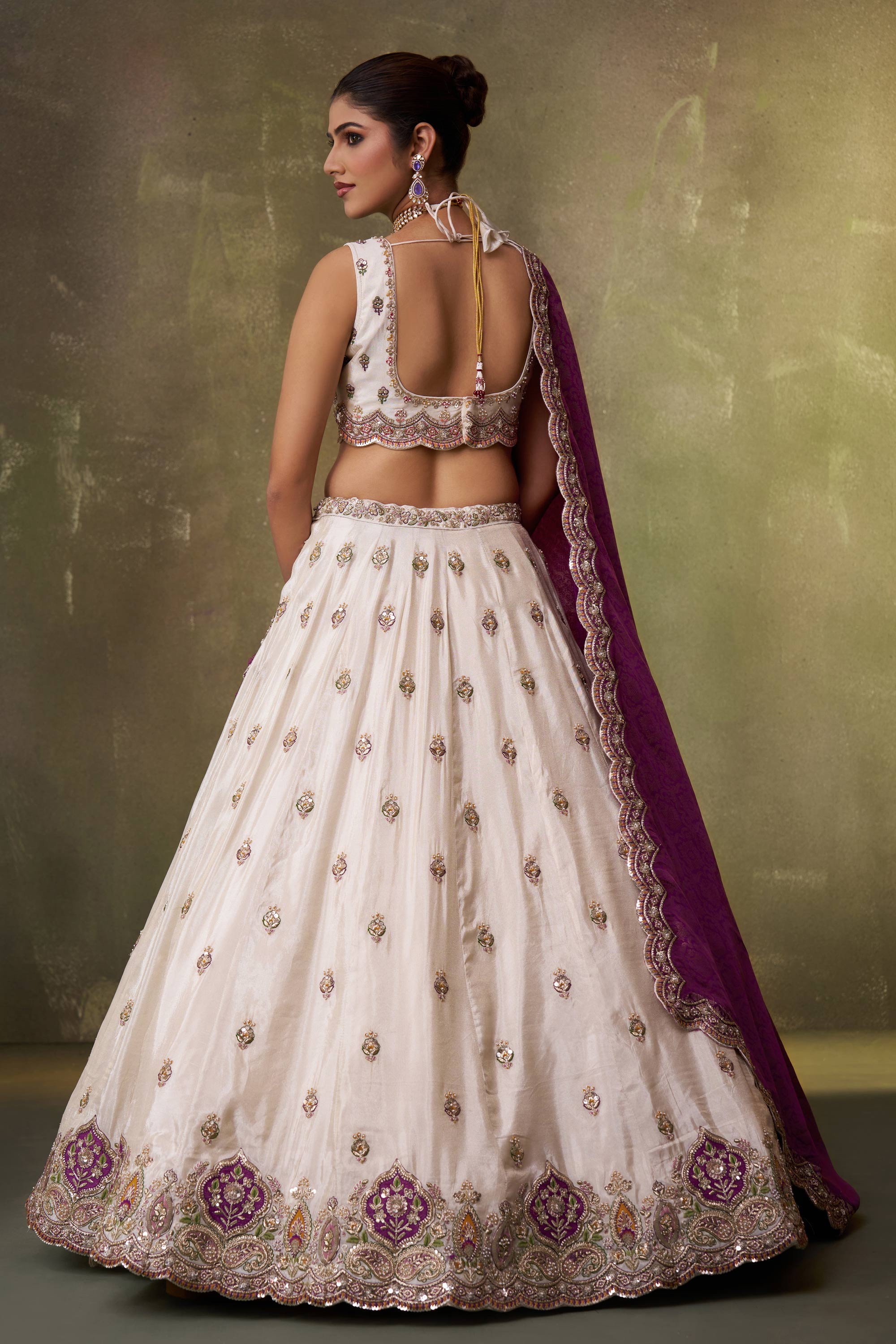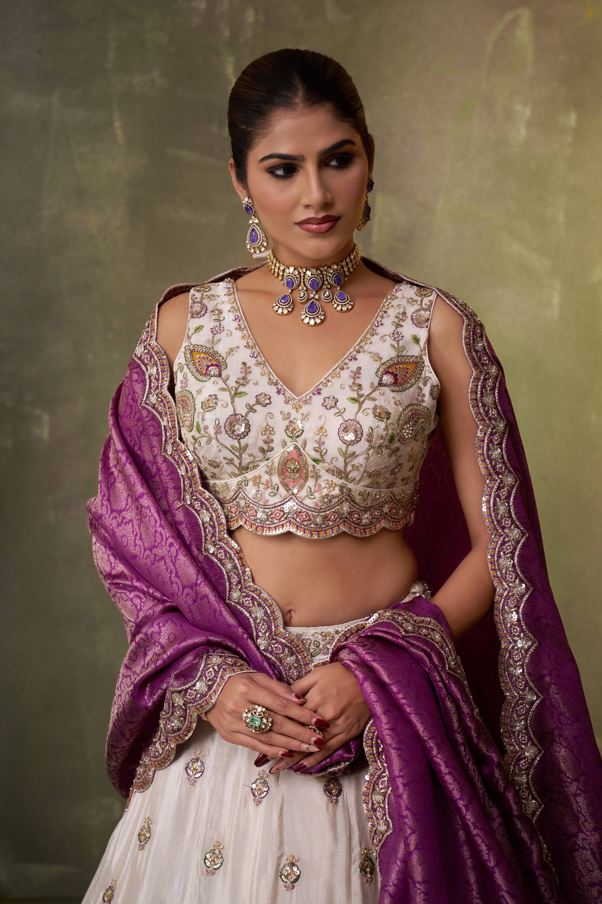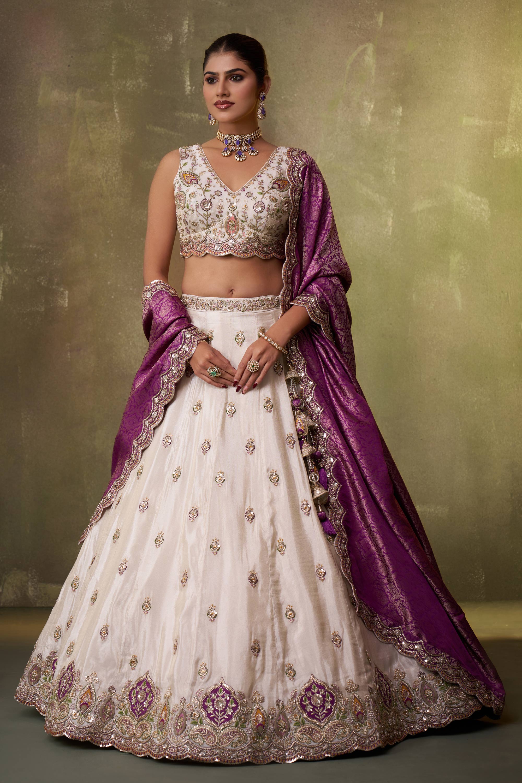 Tissue Embroidered Off White Wedding Wear Lehenga Choli