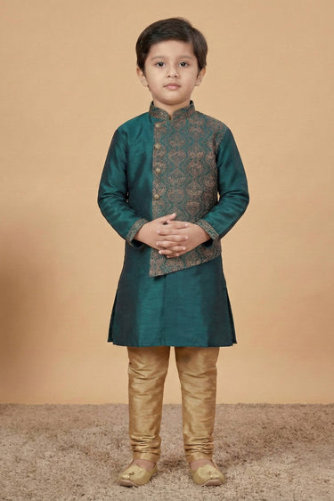 Art Silk Fabric Green Sangeet Wear Readymade Kurta Pyjama For Boys