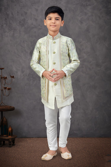 Gorgeous Cream Jacquard Function Wear Readymade Indo Western For Boys