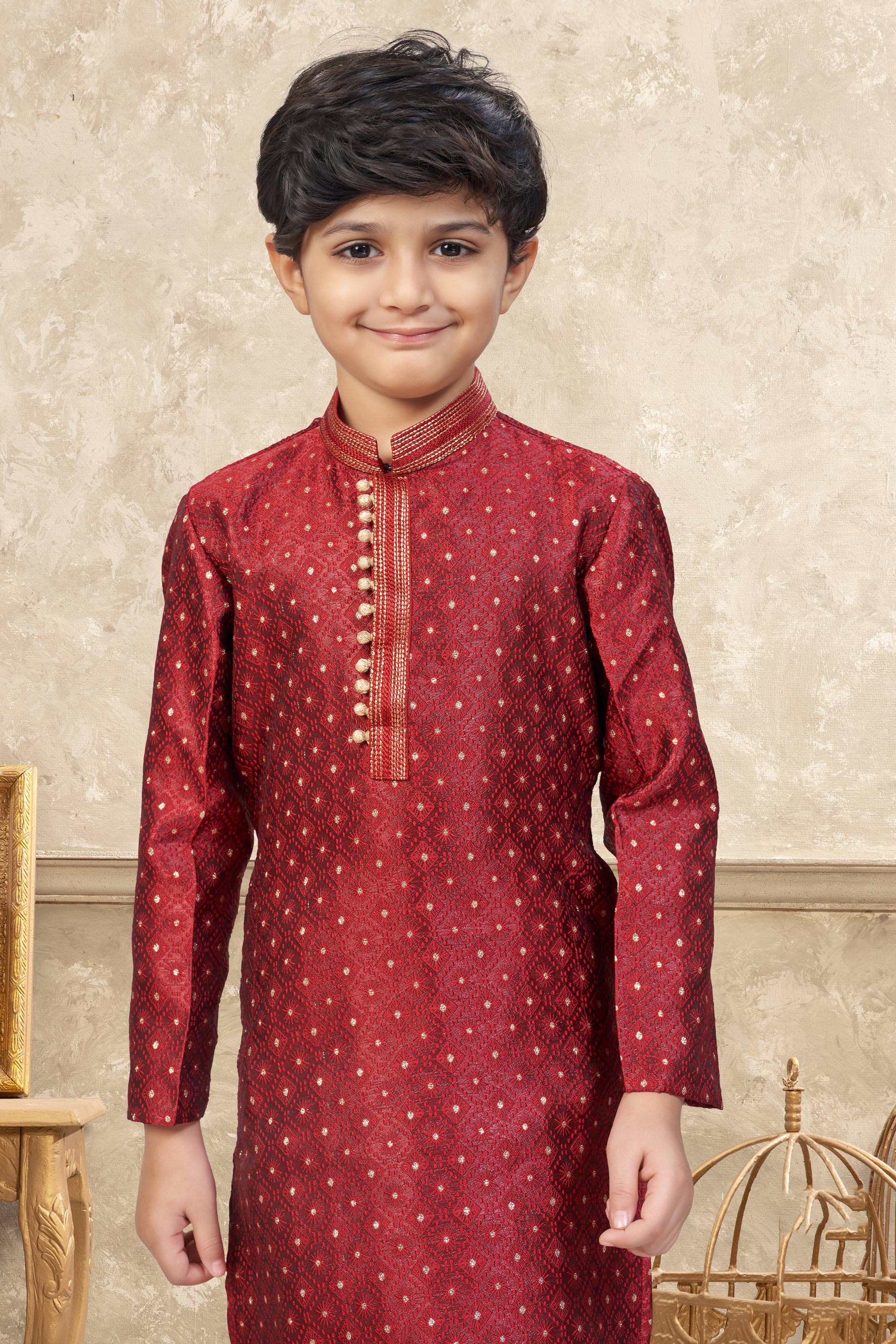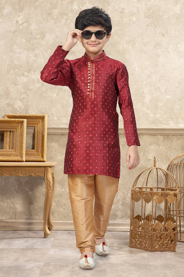Jacquard Fabric Maroon Boys Readymade Kurta Pyjama For Sangeet Wear