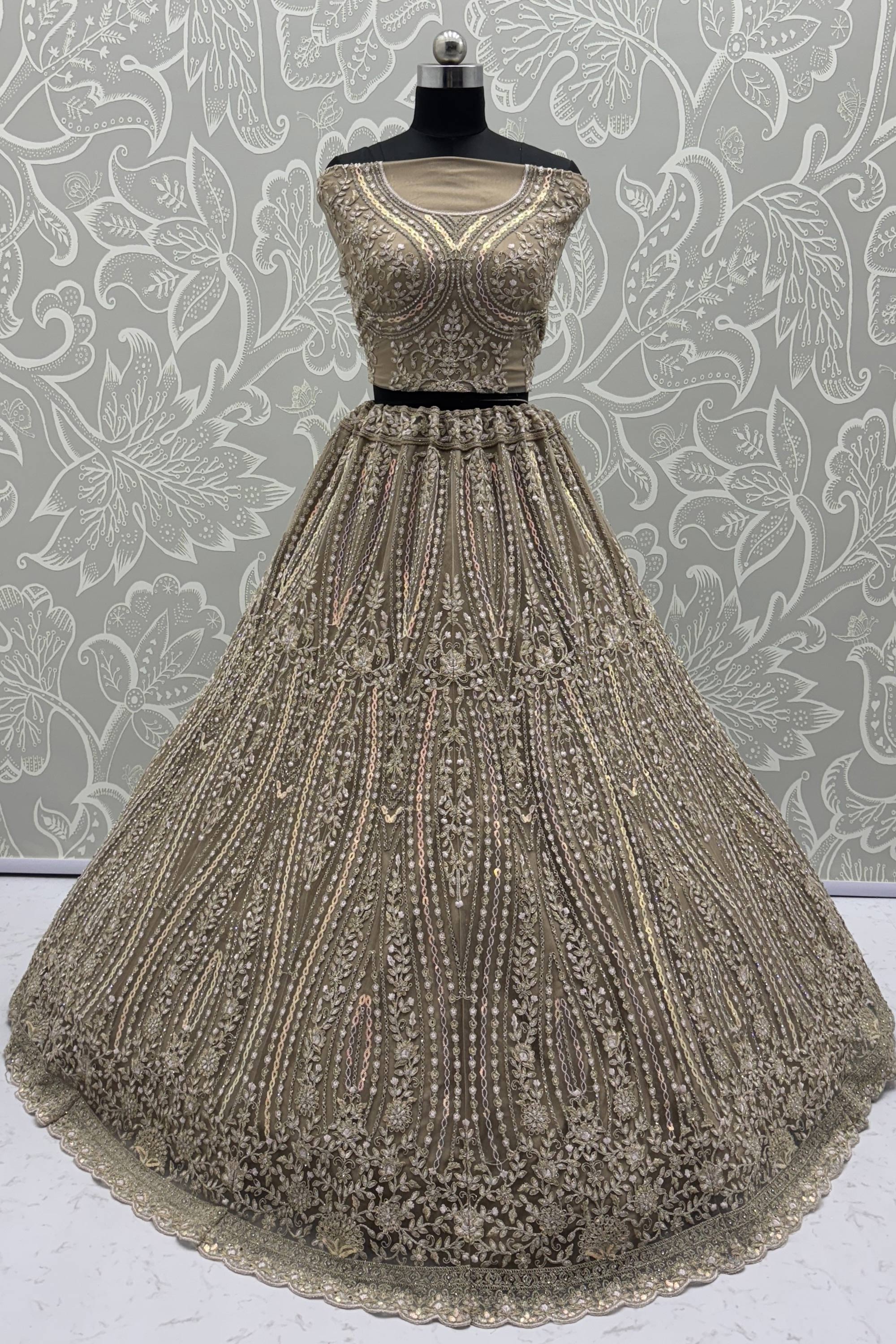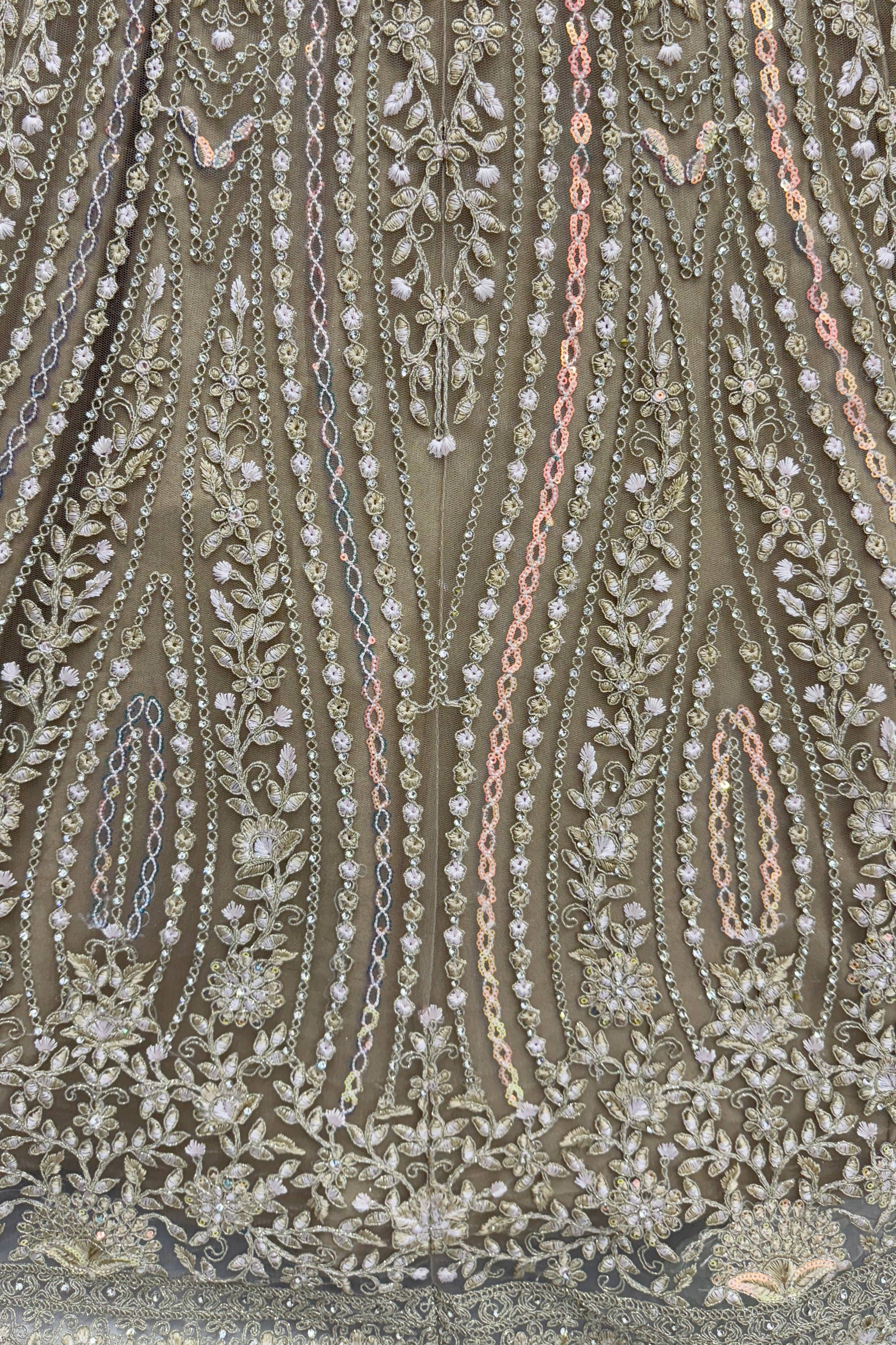 Step into elegance on your big day with this stunning Heavy Embroidered Beige Bridal Lehenga Choli crafted in delicate net fabric. Designed with intricate embroidery work, this outfit radiates sophistication and grace, making it a perfect choice for your special occasion. The beige color adds a timeless touch, while the detailed design ensures a regal appearance. Perfectly suited for traditional ceremonies, this lehenga choli effortlessly combines modern flair with cultural beauty. The lightweight yet durable net fabric keeps you comfortable as you shine throughout the festivities.