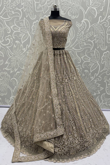 Heavy Embroidered Beige Color Bridal Lehenga Choli In Net Fabric