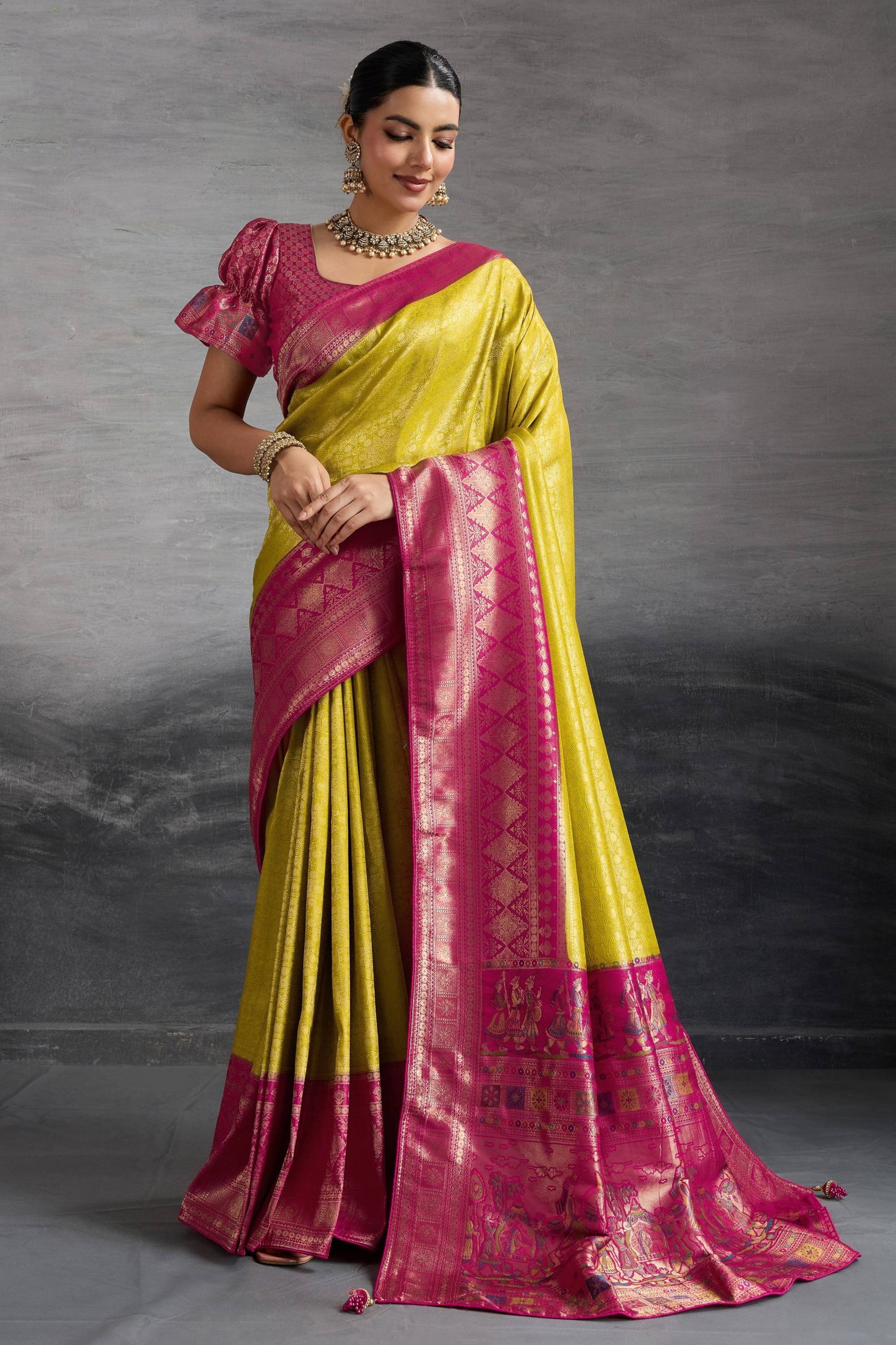 Art Silk Zari Weaving Work Saree In Yellow Color
