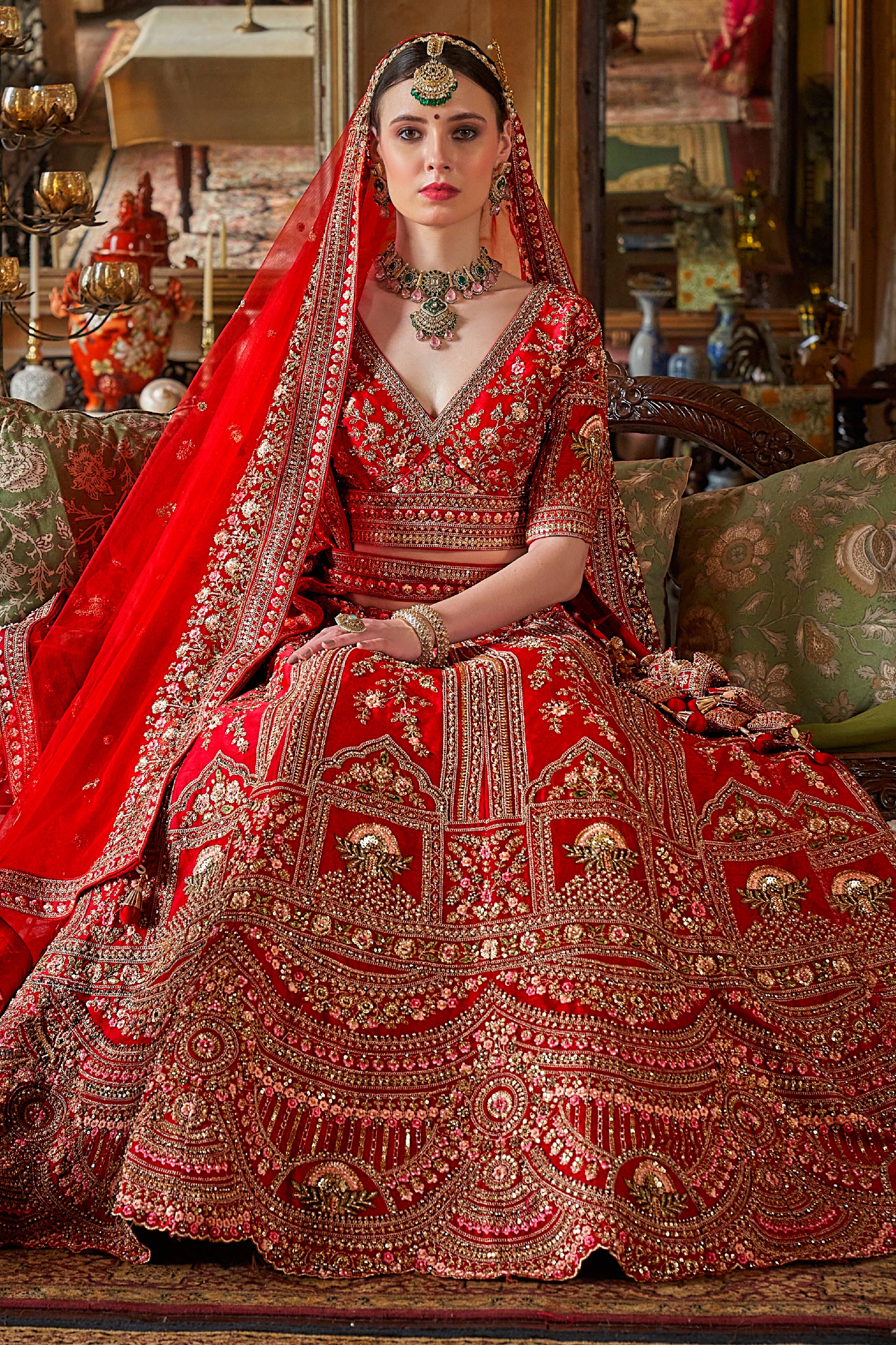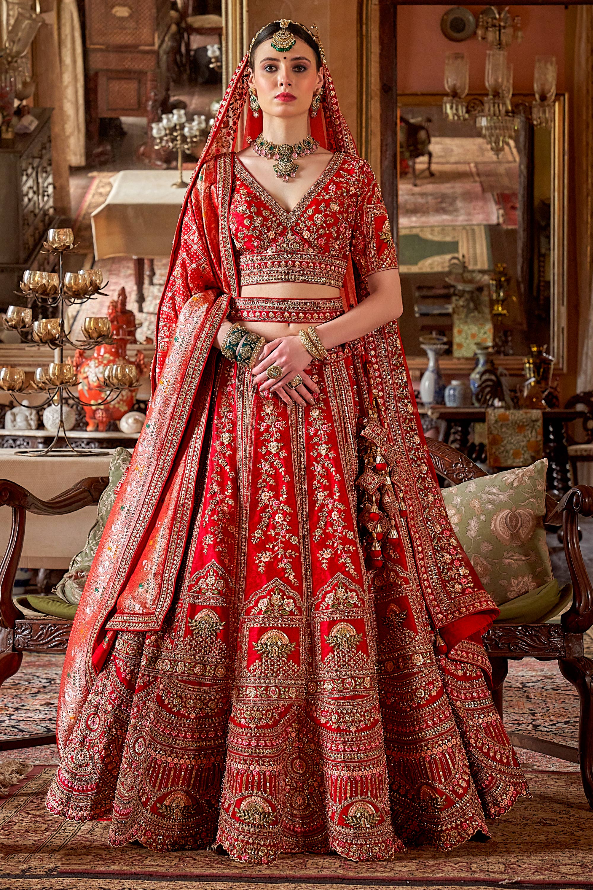 Deep Red Silk Heavy Embroidered Bridal Lehenga Choli