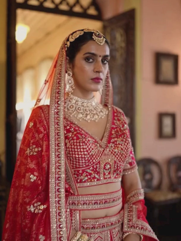 Heavy Embroidered Red Bridal Look Designer Lehenga Choli