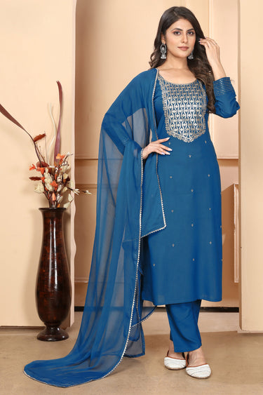 Tempting Rayon Fabric Blue Color Readymade Salwar Suit