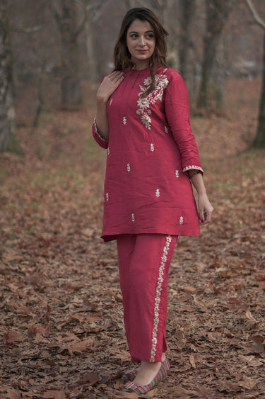 Exclusive Red Art Silk Embroidered Co-Ord Set