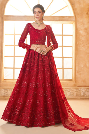 Make your wedding memorable with this stunning Lehenga Choli in beautiful colors. Crafted from soft net, the set includes a lehenga and blouse complemented by a matching dupatta. It features intricate designer thread embroidery and dazzling diamond work. Customizable up to size 42 for the perfect fit. Dry clean only to preserve its intricate work.Please note: The accessories worn by the model are not included. Product color may differ slightly due to lighting or display settings. Ships within 10 working days.