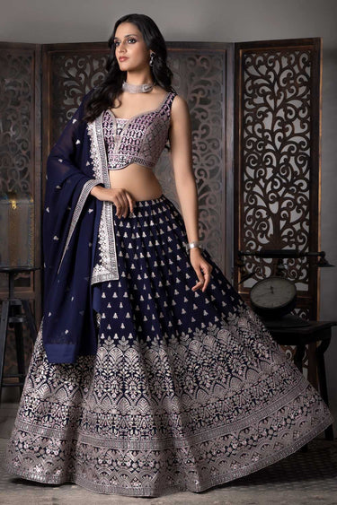 Heavy Georgette Fabric Embroidered Navy Blue Color Readymade Lehenga