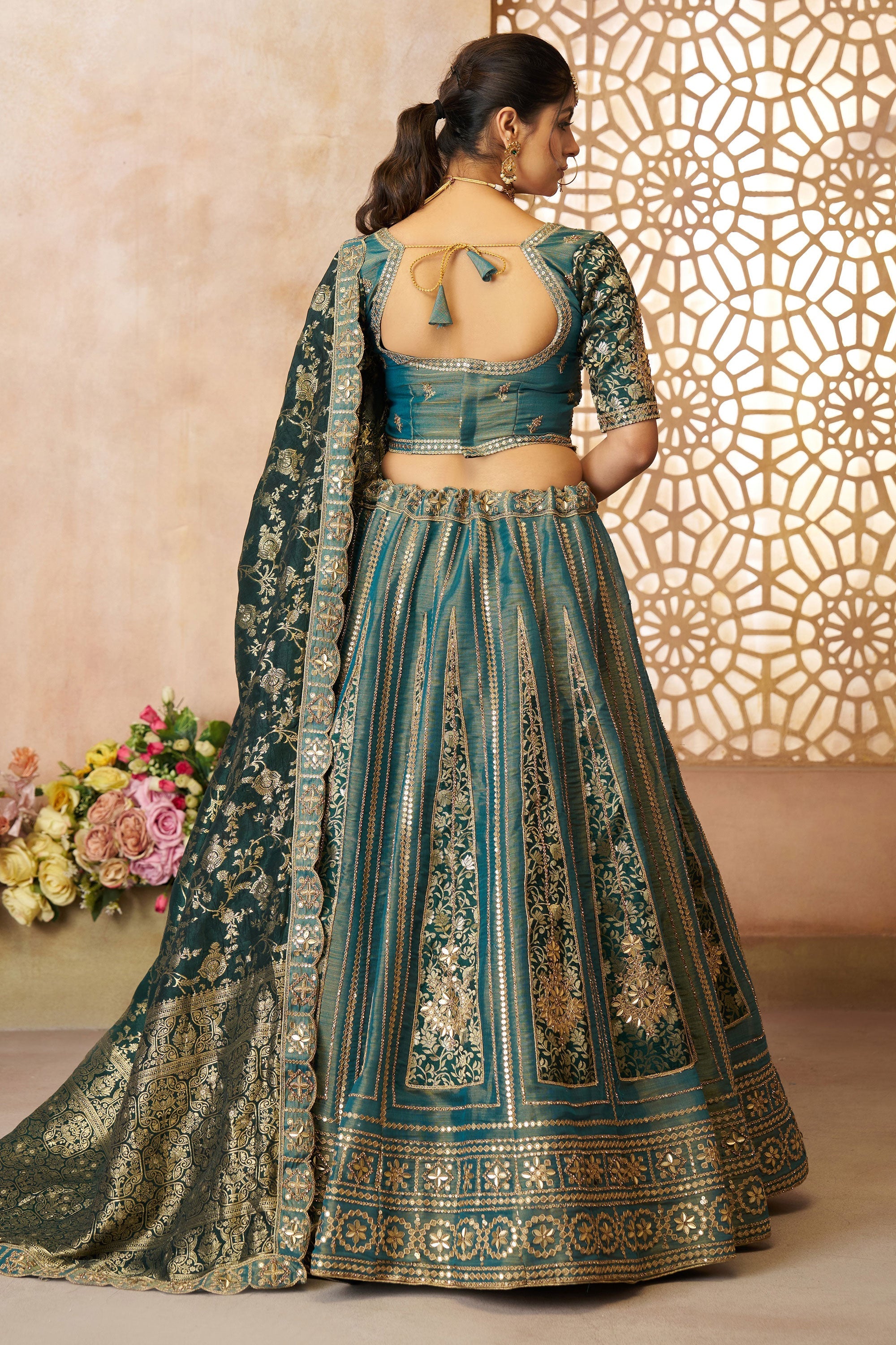 Teal Sequins Work Tissue Fabric Lehenga Choli