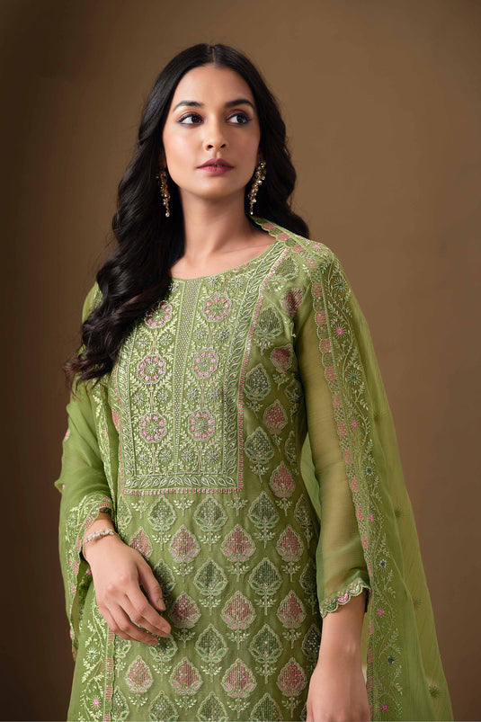 Rs. 6,700.00Rs. 13,400.00 Original Price Save 50%/ Mehendi Green Readymade Designer Salwar Kameez With Jacquard DupattaSave 50%