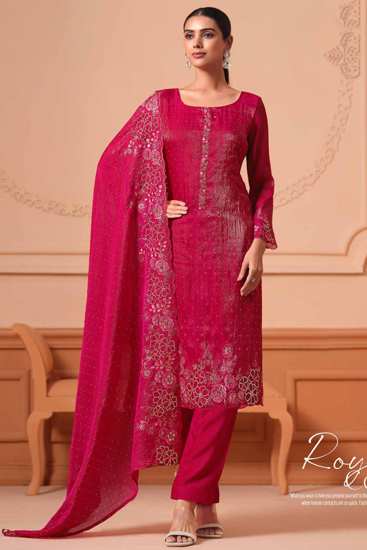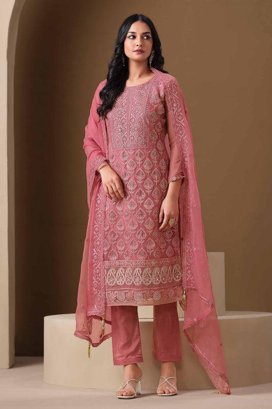 Rs. 6,700.00Rs. 13,400.00 Original Price Save 50%/ Organza Pink Readymade Designer Salwar SuitSave 50%