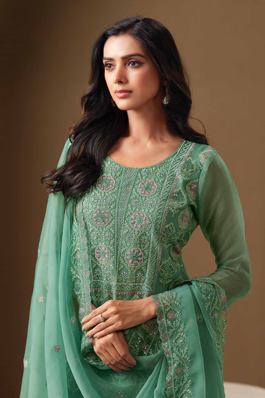 Rs. 9,800.00Rs. 19,500.00 Original Price Save 50%/ Sea Green Designer Readymade Salwar KameezSave 50%