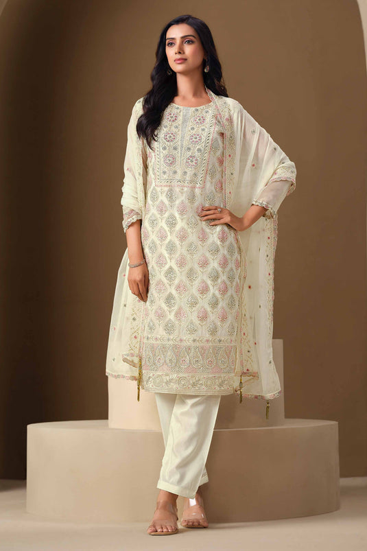 Rs. 8,500.00Rs. 16,900.00 Original Price Save 50%/ Off White Chiffon Readymade Designer Salwar KameezSave 50%