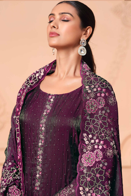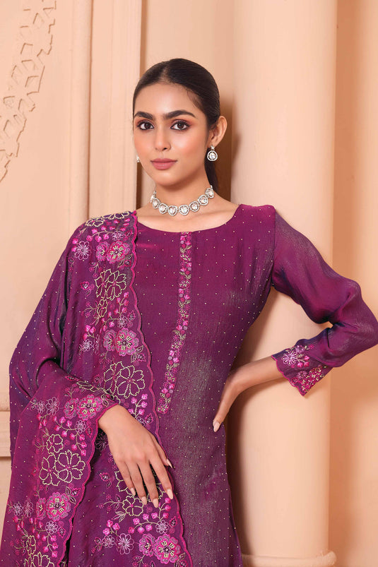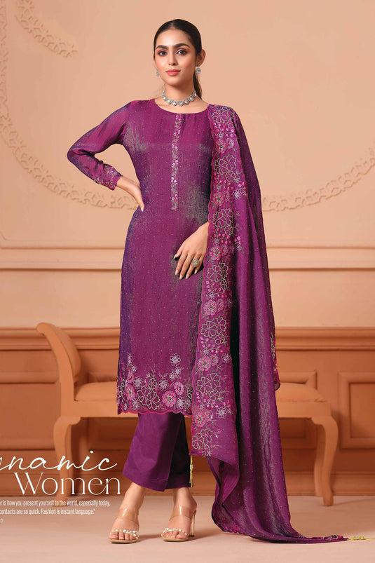 Rs. 6,500.00Rs. 12,900.00 Original Price Save 50%/ Chiffon Purple Readymade Designer Salwar SuitSave 50%
