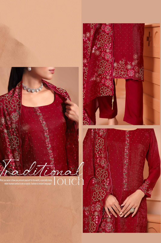 Rs. 6,200.00Rs. 12,400.00 Original Price Save 50%/ Function Wear Embroidered Readymade Designer Salwar Kameez In Art Silk Pink ColorSave 50%
